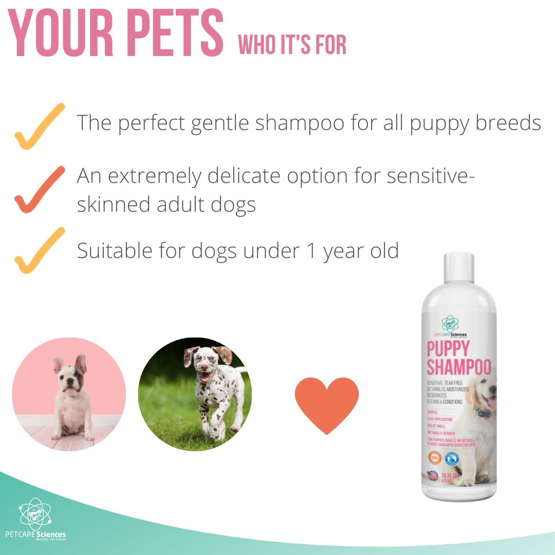 Gentle: No Sulfate, Parabens, Phosphate, MEA or DEA. The Very Best Ingredients In a Shampoo For Puppies Over 12 weeks.