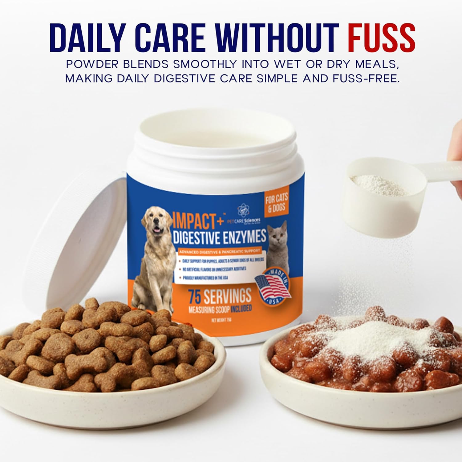 PET CARE Sciences Impact Digestive Enzymes for Dogs & Cats | 75 Servings | Enzyme Powder for Digestion | Pancreatic Enzymes for Dogs & Cats | Digestive, Weight & Pancreatic Issues | Made in The USA